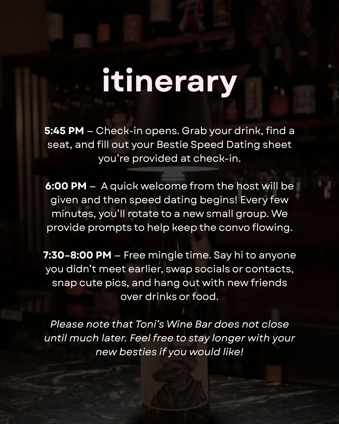 February 12th (6-8pm) | Toni’s Wine Bar | 158 Barrett St, Schenectady, NY 12305