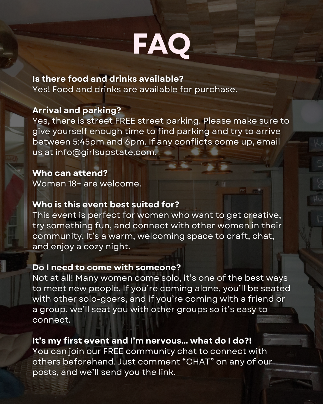 You can always contact us for any return question at info@girlsupstate.com.